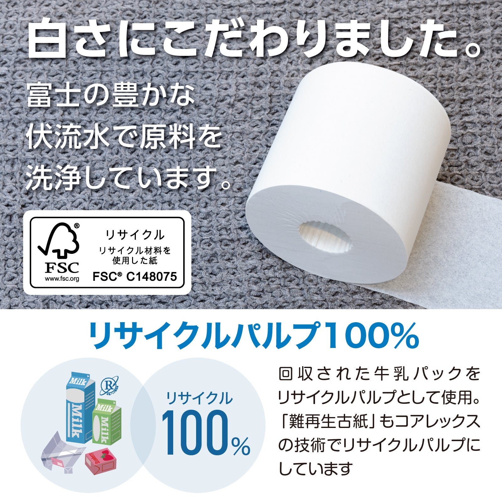 ◎地球にやさしい再生紙100%リサイクルトイレットロール